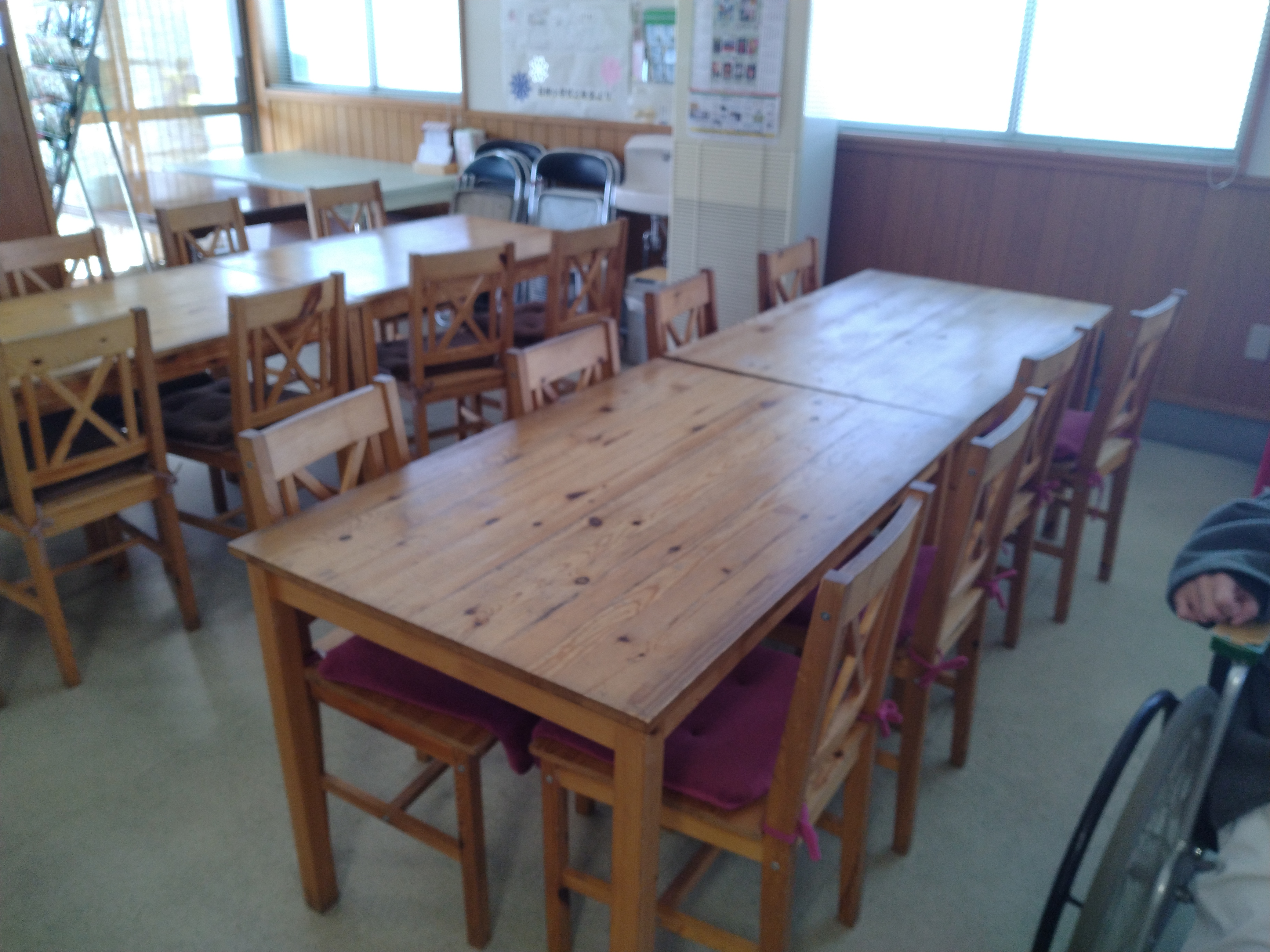 食堂の机・椅子は可動式で、車いすでも利用可能です。